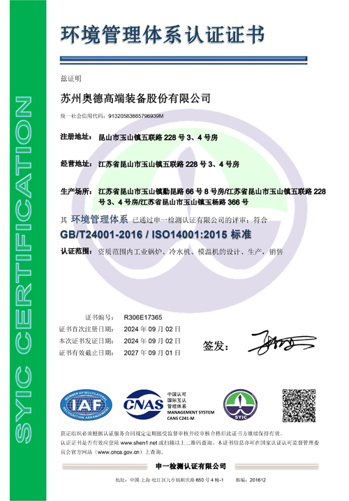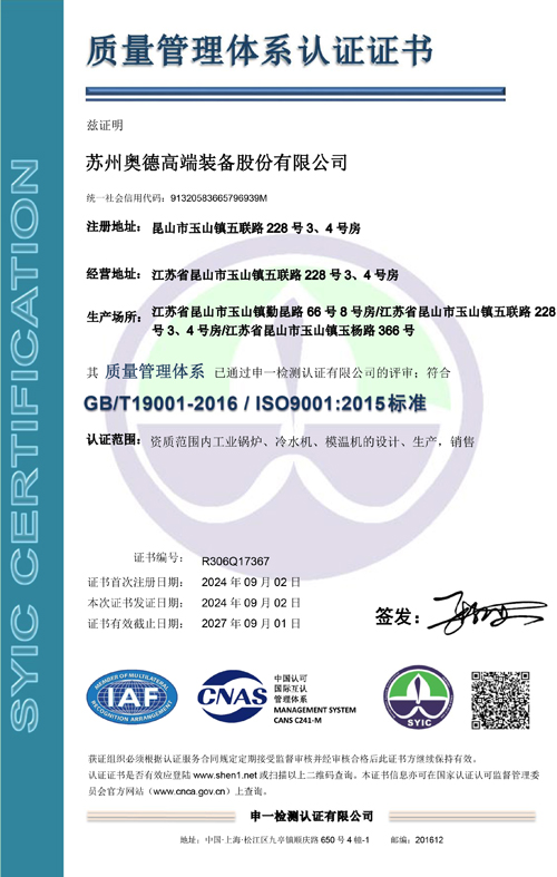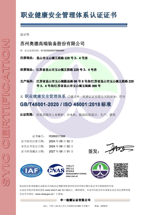 10月奥德昆山平谦厂区投入生产 成立锅炉事业部